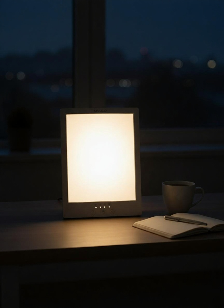 De Lucent Bright combineert modern design met bewezen effectiviteit. Deze lichttherapielamp is ontwikkeld door Mvolo om je biologische klok te ondersteunen en vermoeidheid, somberheid en concentratieproblemen aan te pakken. Ideaal voor thuiswerkers, studenten en iedereen die te weinig daglicht krijgt.