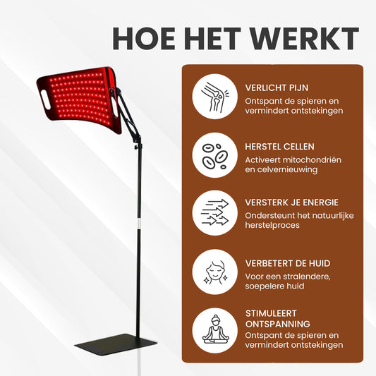Enkele Infraroodlamp: Perfect voor gerichte ontspanning en het verbeteren van je slaapritme. De combinatie van rood licht en aangename warmte helpt je lichaam tot rust te komen.