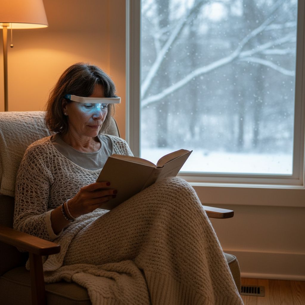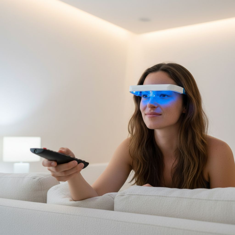 Werk je veel binnen of achter een scherm? Dan mis je daglicht, wat je stemming en energie beïnvloedt. De Lichttherapie bril compenseert dat tekort en helpt je lichaam denken dat het buiten is.