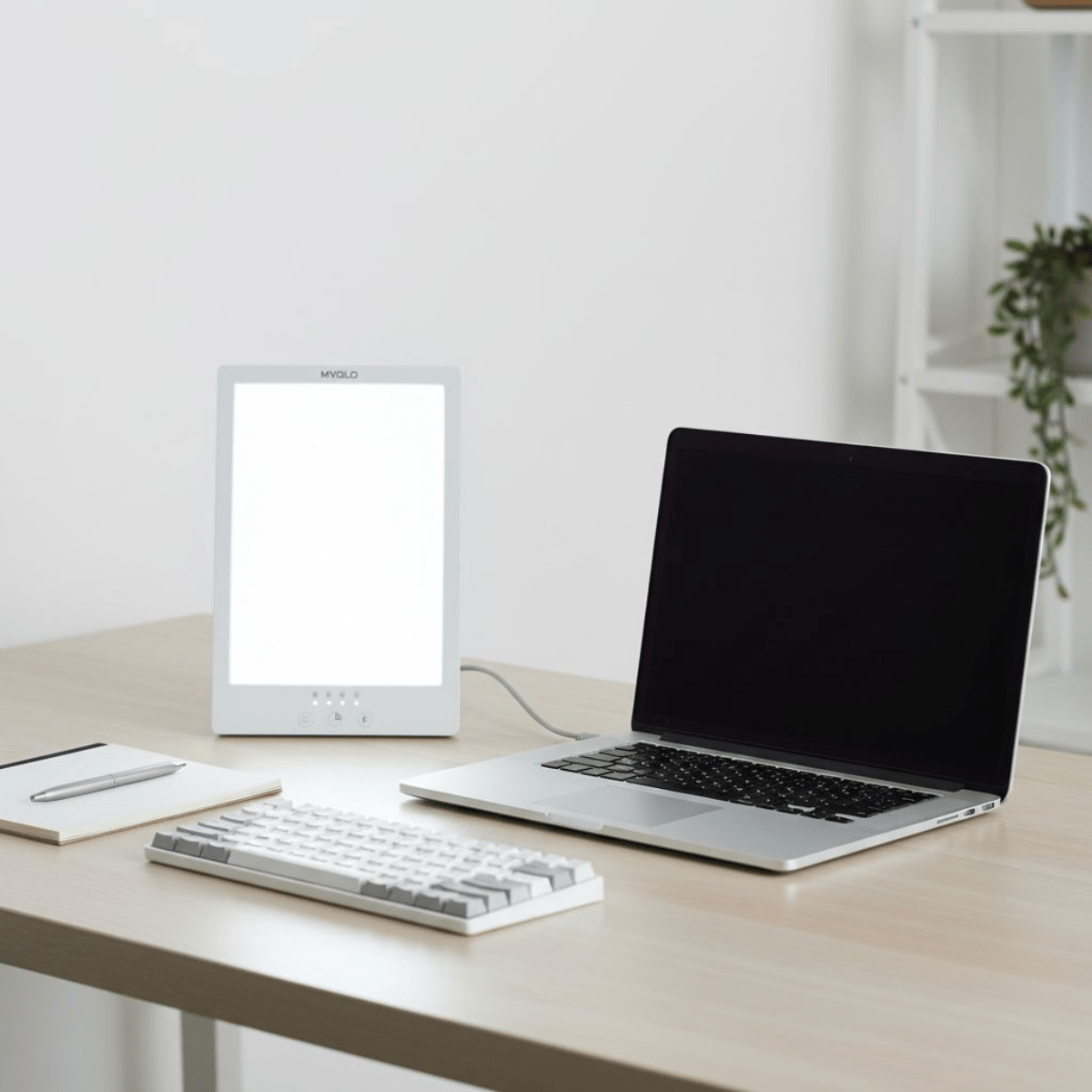 De Lucent Bright combineert modern design met bewezen effectiviteit. Deze lichttherapielamp is ontwikkeld door Mvolo om je biologische klok te ondersteunen en vermoeidheid, somberheid en concentratieproblemen aan te pakken. Ideaal voor thuiswerkers, studenten en iedereen die te weinig daglicht krijgt.